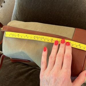 ๐๐HP 7/30๐๐ #Quietluxury. Olive canvas and beautiful pebbles leather in this original Ghurka bucket bag. Solid brass hardware. Almost unused. Forever.