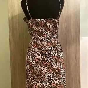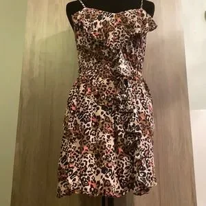 Rue21 Leopard dress is so stylish an cute!!! Size Medium. In like new condition worn once! I have provided Photos of the front an back. Has ruffles going down the center of the dress.