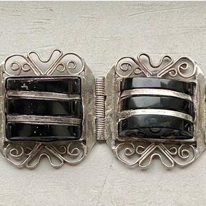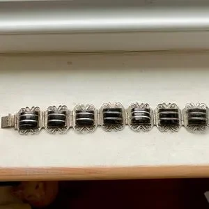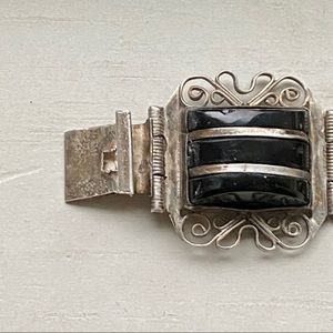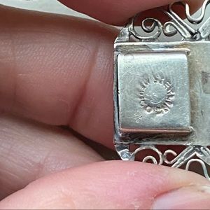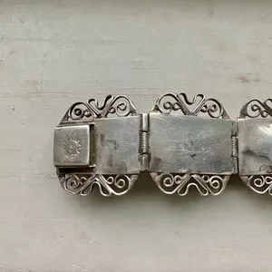 Made in Mexico, this is a vintage sterling bracelet with decorative border, mild scratching and disruptions to surface as expected of a vintage item- lovely! …in vguvc, approximately 7 1/4”