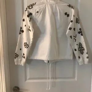 Beautiful white jacket with beading on front and sleeves. Like new condition. Never worn. Measurements provided in photos.