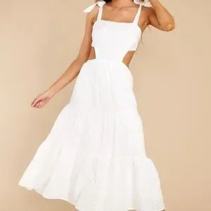 This dress features chic cutouts and self tie straps, self tie strap on the back, and with open sides and back.