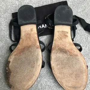 Very good condition Chanel sandals, worn a few times (because of the leather soles they get stained easy.) Has a mark, but it can be cleaned easily if bothered.