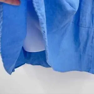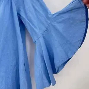 Zara Dress Linen Cotton Blend Blue Off the Shoulder Bell Sleeve Coastal Size M