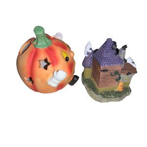 Halloween lot of 3 small decor - Shelf Sitter, Candle Holder, Haunted House