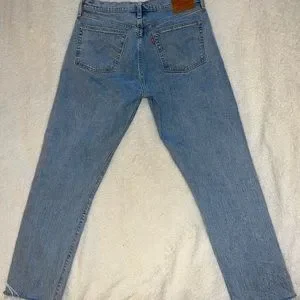 Jeans are light wash with a raw hem. Waist size is 29 which is an 8 in womens.