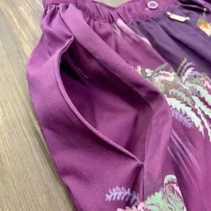 Style: zipper up back with a top button closure. Has pockets