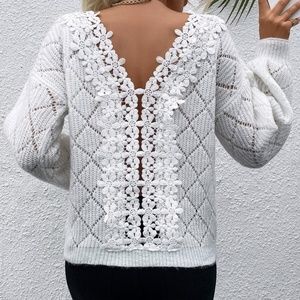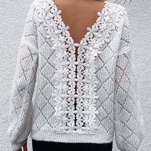 Cozy White Floral Embroidered Knit Sweater Top