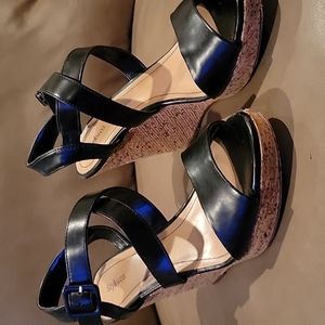 Black Lofted on a cork-like platform heel, wedges from Style & Co Sz 7.5