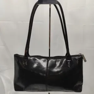 Vintage HOBO INT. Lola Tote Bag Black polished leather / brown wear highlights
