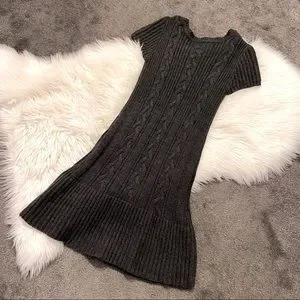 Taupe cable knit tunic with cap sleeves. More taupeand less grey in person.