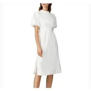 Caara Dress Size Small Fritz High Neck Puff Sleeves Ivory
