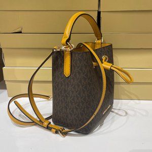 Michael Kors Suri MINI Bucket Satchel Shoulder Crossbody Bag MK Brown Yellow