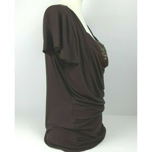 Vintage ALYX Brown Studded Sequin Stretchy Drape Neck Blouse Top XL