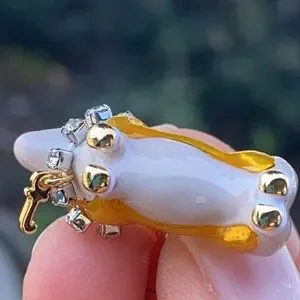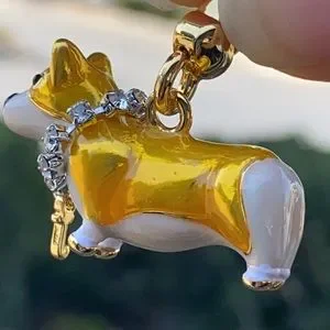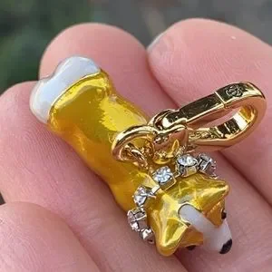 This cute little guy has the most adorable face!!! He’s complete with a rhinestone collar and signage J charm dangling from the front