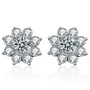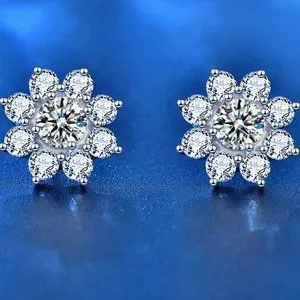 Certified 1ct. t.w. Diamond Moissanite Sun Flower Stud Earrings NEW J