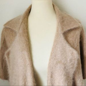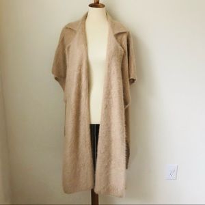 Elevate your style with this gorgeous 100% pure cashmere cape sweater! Features a luxurious beige color, open-front, snap buttons on each side, and a cozy, lightweight feel perfect for any season. Paired here with black leggings and white sneakers for a chic look. Gently used, in excellent condition. A must-have for your wardrobe!