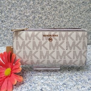 NWT MICHAEL KORS Jet Set CHARM Vanilla LG TZ Cntntl Wallet