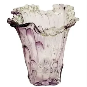 RARE - signed Adam Jablonski Orignal. Amethyst colored, Wave shape, Hand-blown, art deco vase from Poland.