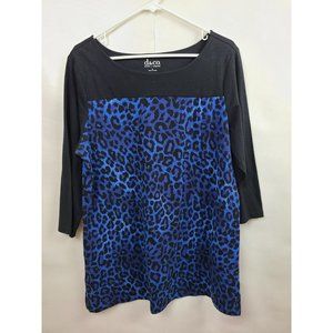 Denim & Co. Womens Tunic Top Size Large Black Blue Leopard Print 3/4 Sleeve