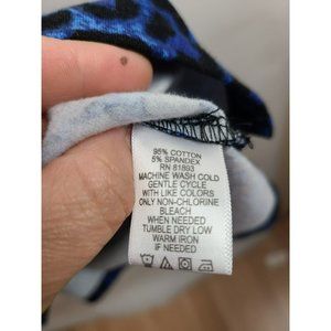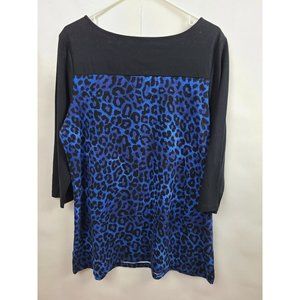 Denim & Co Black Blue Leopard Print 3/4 Sleeve Tunic Top Size Large