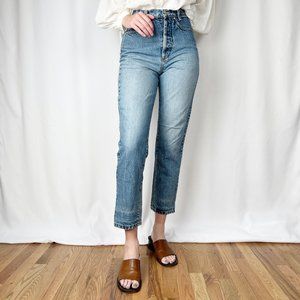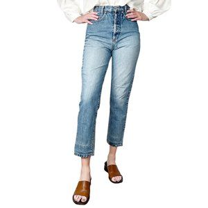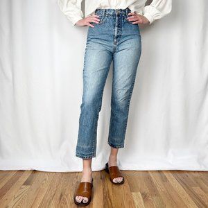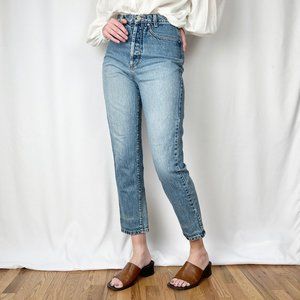 Vintage Button Fly High Rise Ribcage Straight Leg Relaxed Fit Faded Denim Jeans