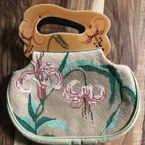 ‼️SOLD 1980’s Patricia Smith Moon Bag Needlepoint Hand Painted Lacquer Floral
