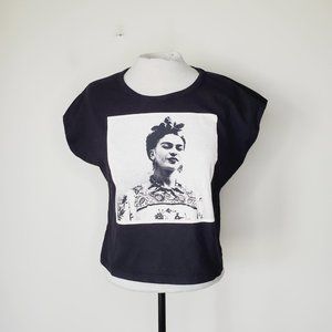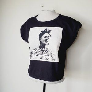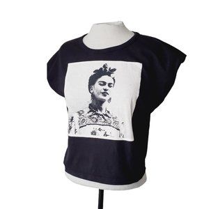 Frida Kahlo Official T-Shirt Portrait Tribute Graphic Boxy Black L
