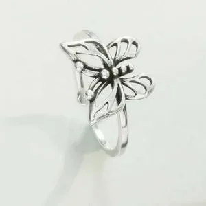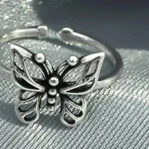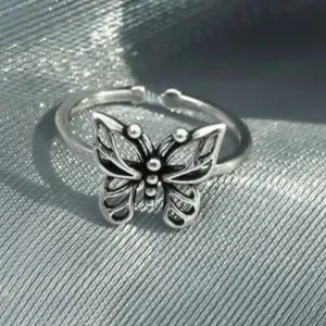 Butterfly Ring Silver Colored Adjustable Sizing OSFA