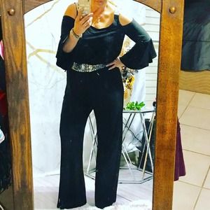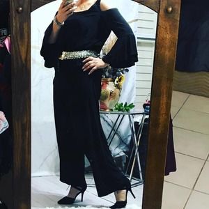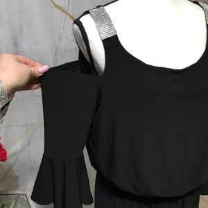 New with tags, flared sleeves, cold shoulders with rhinestones strips jumpsuit, party wear