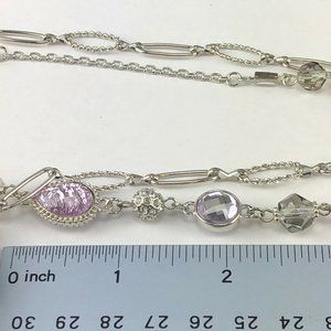 Kohls Metal Necklace Long Double Strand Chain Silver Tone Lavender Beads