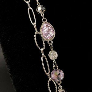 Kohls Metal Necklace Long Double Strand Chain Silver Tone Lavender Beads, Adjustable 35" to 38"