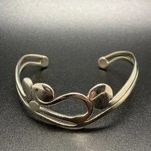 Vintage Silver Tone Modern Organic Swirly Freeform Cuff Bracelet