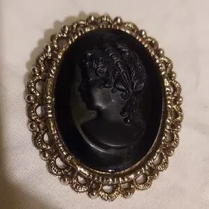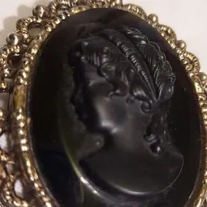 Vintage Silvertone WMAC Black Cameo Brooch / Pendant