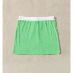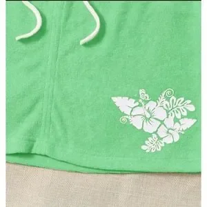Terry Cloth Mini Skirt With Hibiscus Flower/Tropical Flower Green & White Large