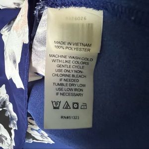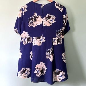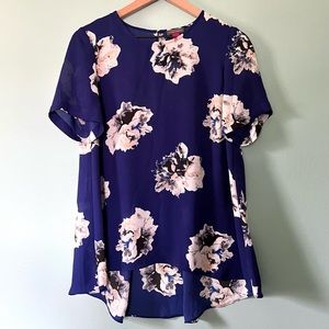 Gorgeous deep blue top with large white floral print in size small.