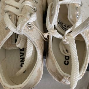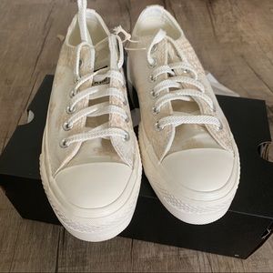 Low-top canvas sneakers in off-white. Embroidered detailing throughout.