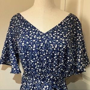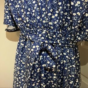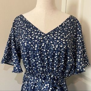 Style tags: spring dress women floral summer minidress feminine cute comfy adorable lightweight tie at the waist navy blue flowers flutter sleeves