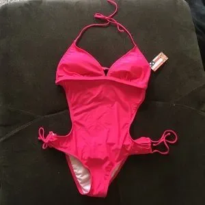 NWT fuchsia pink halter style monokini. Sanitary liner still attached. First pic is a stock pic in a different color but same style so you can see what it looks like on.