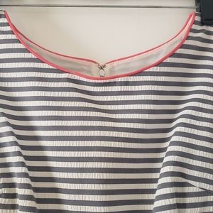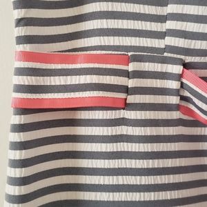 Jessica Howard brand dress, size 10P, sleeveless, charcoal and white striped with coral trim accent, zipper on the back, excellent condition, like new! No need to iron it, very comfortable material.