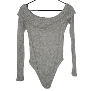 Out From Under Gray Ribbed Knit Long Sleeve Off the Shoulder Bodysuit
