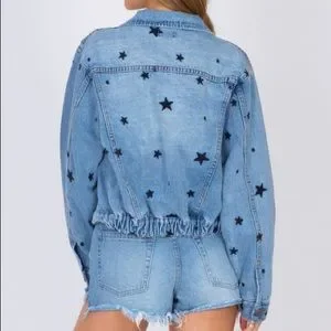 Amuse Society Daytrip Jean Jacket with Embroidered Stars Size Medium Only Worn a few times