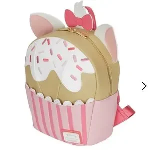 Adorable Marie has stumbled upon a tempting cupcake, and she might take a delightful tumble. Bring her with you on your next adventures with this Loungefly Marie Sprinkle Cupcake Cosplay Mini Backpack.
