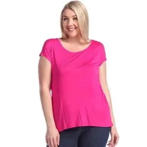 High low hem, perfect for leggings, cute twist back style, bright, fun fuchsia pink color and a super soft, stretchy, comfy fabric