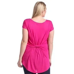 Twisted Knot Back High Low Hot Pink Short Sleeve Drapey Top