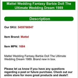 Vintage 1989 Mattel Wedding Fantasy Barbie NRFBNIB