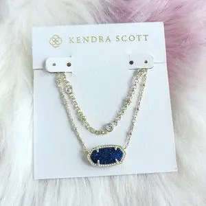 Gold Elisa Indigo Blue Drusy Multi Strand Necklace