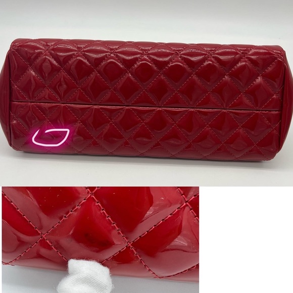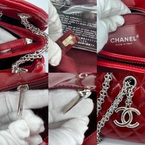 Authentic Chanel Mademoiselle small red patent leather chain shoulder bag