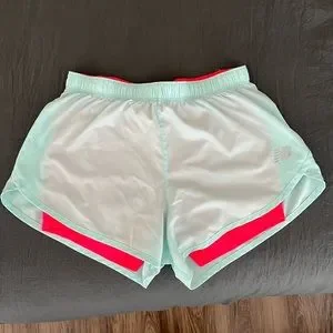 Have built in spandex underneath that are hot pink and the outside is light blue