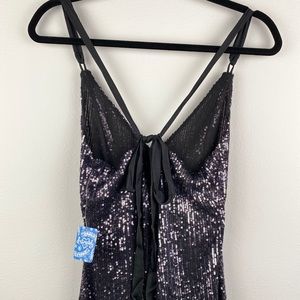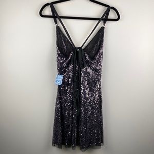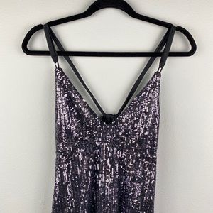 Glam up your next night out with this sleeveless mini dress covered in shimmering sequins.