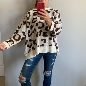 Animal Print Dolman Sleeves Oversized Fit Sweater. A Fall favorite! Super cute and fun to wear. Brown, pink, cream. Long sleeves. Oversized fit. 100% acrylic. Fit is true to size. New boutique item.